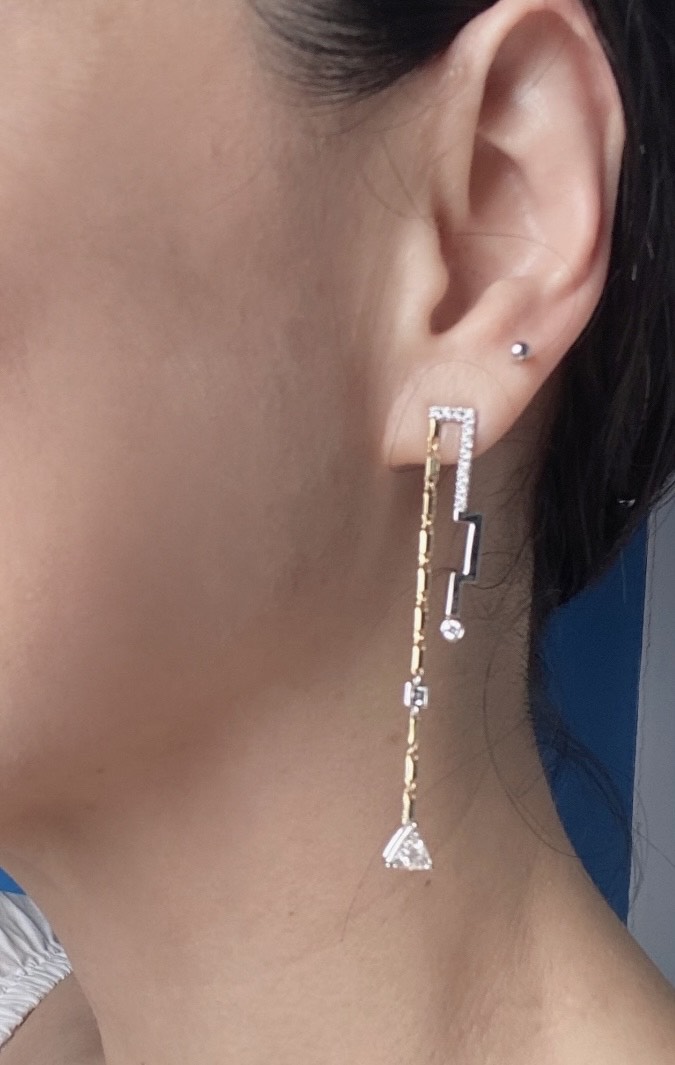 A pair of asymmetrical earrings that you fall in love at first sight - powerful, daring and chic. As the name says, they are inspired by cog machinery parts, and cranes in particular.