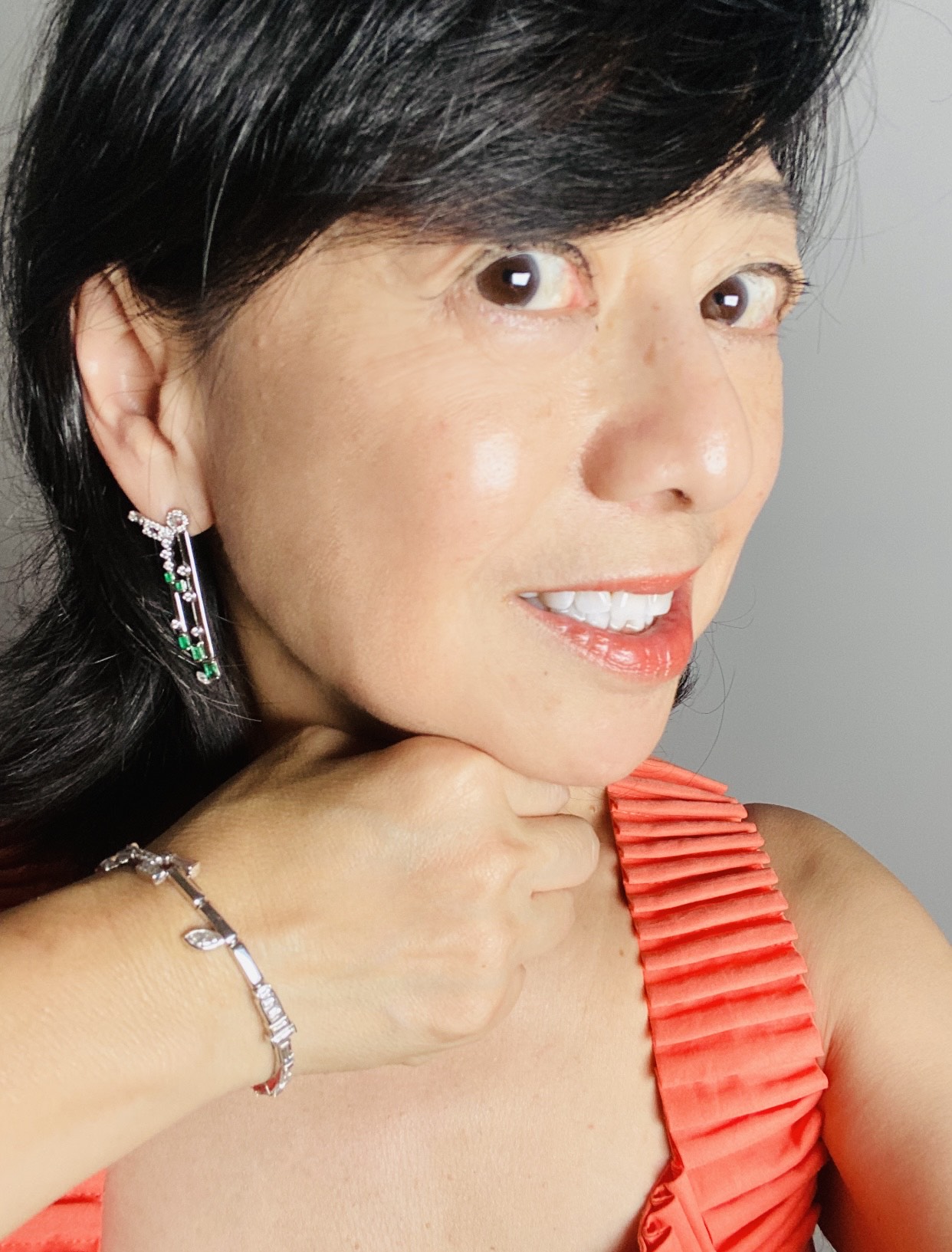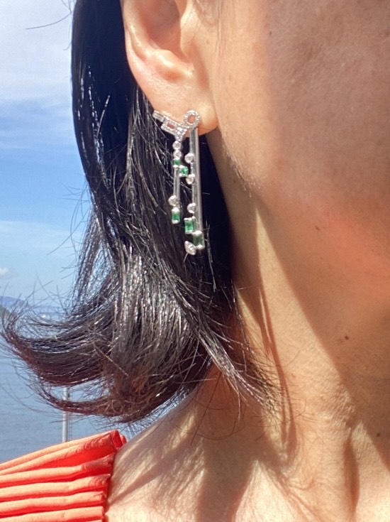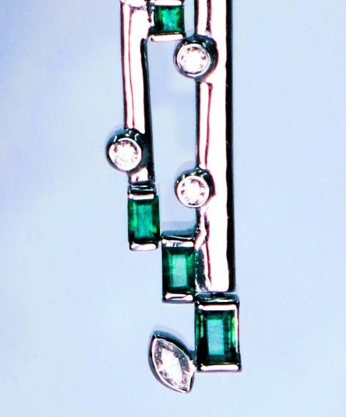 A definitely eye-catching pair of emerald and diamond earrings for both day and evening wear. Clean lines, round brilliant cut diamonds and dazzling emeralds.