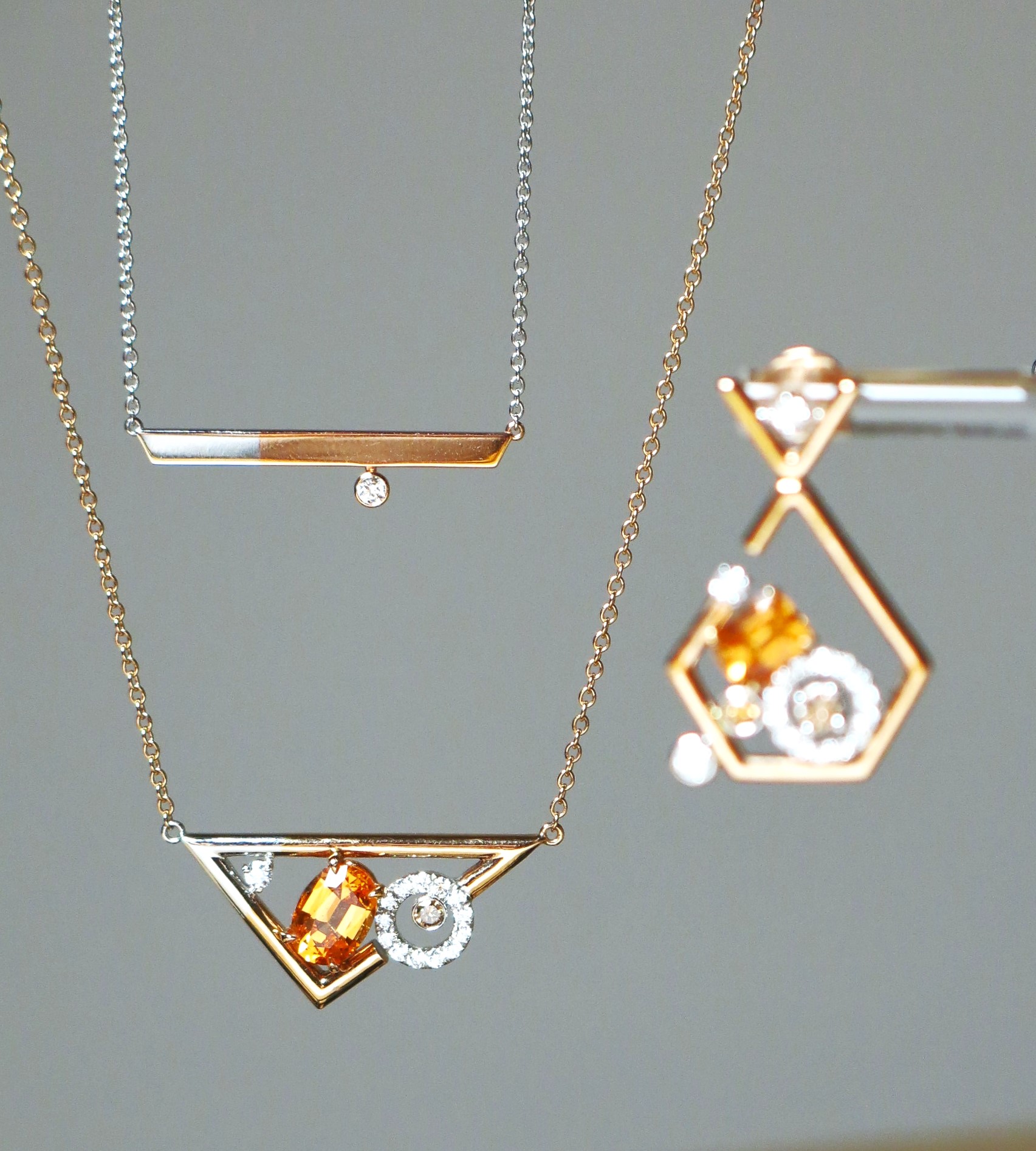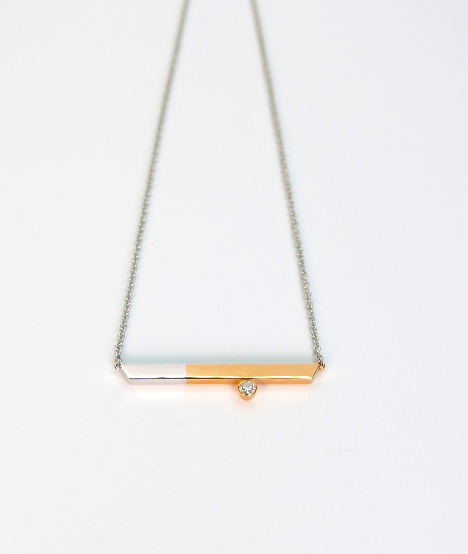 A modern two-colour tone trapoid diamond pendant with white gold chain.